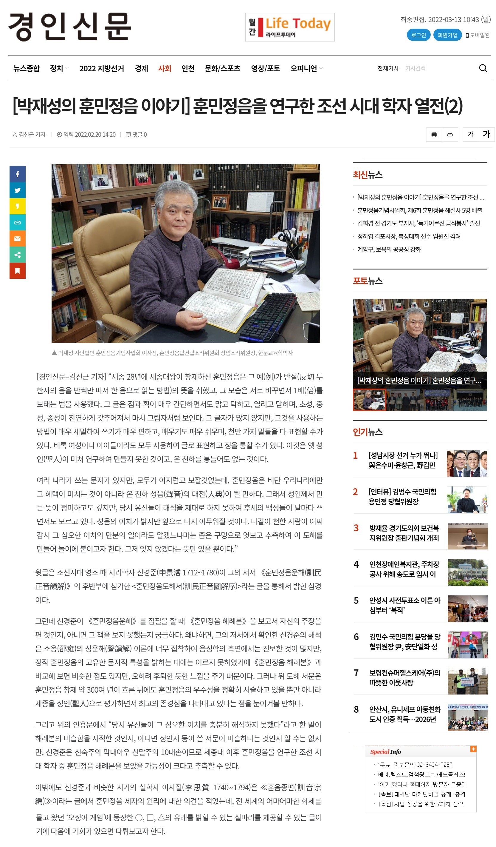 [경인신문] 훈민정음을 연구한 조선시대 학자 열전(2)