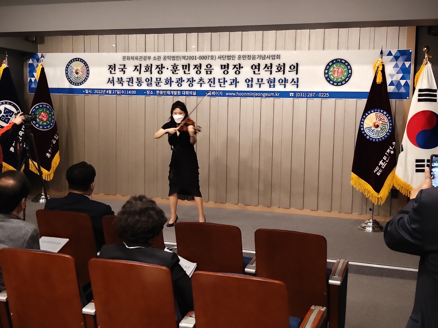 2022년 4월 27일(수) 14:00 서울시 중구 퇴계로에 위치한 한중인재개발원 회의실에서 사단법인 훈민정음기념사업회 전국 지회장 및 훈민정음 명장 연석회의가 개최되었다. 이날 행사에는 세계적인 바이얼리니스트 여근하 교수가 특별공연으로 축하해 주었다.