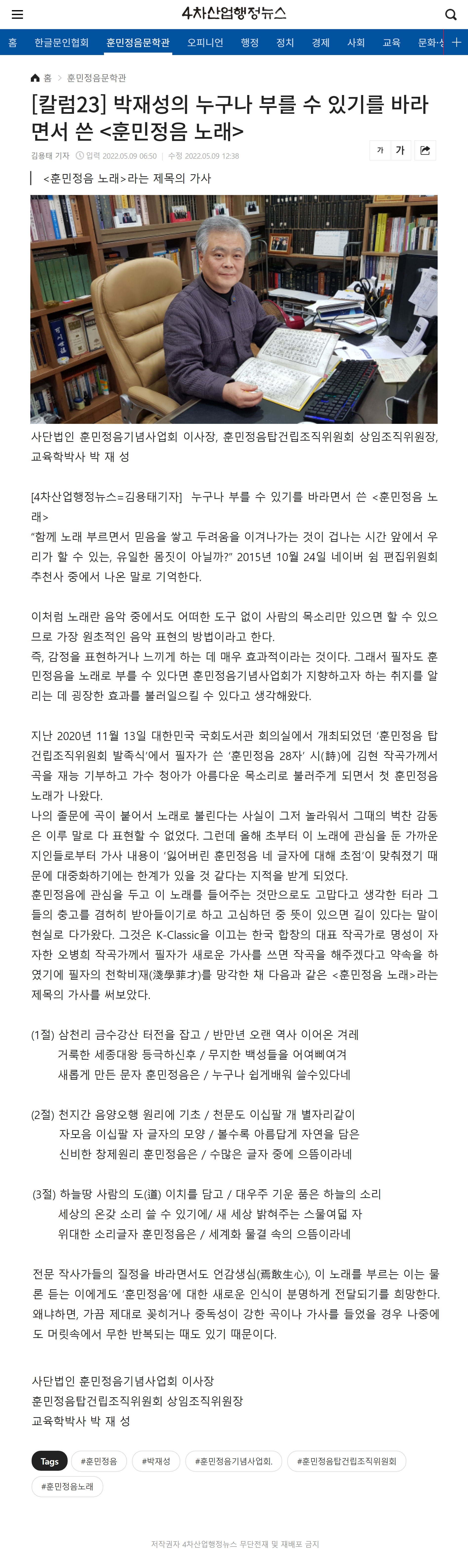 [4차산업행정뉴스] 누구나 부를 수 있기를 바라면서 쓴 <훈민정음노래>