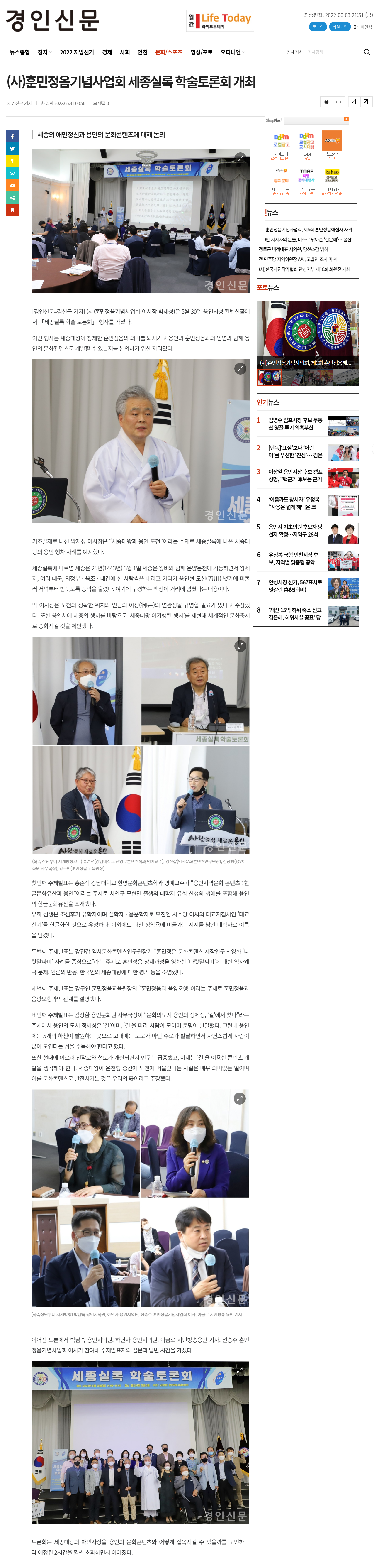 [시민용인방송] 세종실록 학술토론회 성공개최