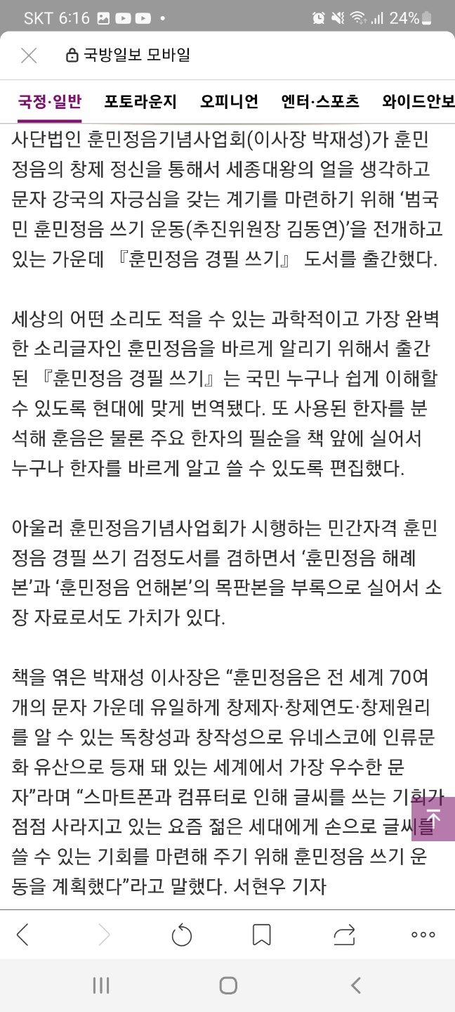 [국방일보] 세계 최고의 문자 강국 자긍심 높인다