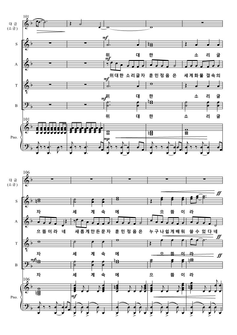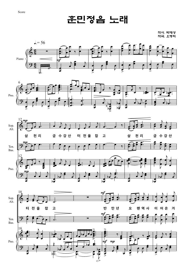 훈민정음의 노래 작곡 헌정(박재성 작사 오병희 작곡)