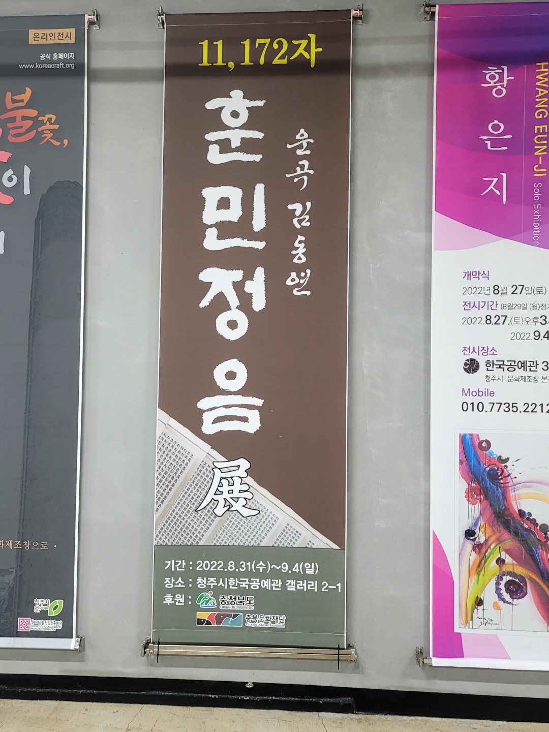 2022년 8월 31일(수) 충북 청주시 문화제조창 3층 전시실에서 개막한 운곡 김동연 충북지회장의 훈민정음 11,172자 서예전이 성황리에 개최되었다.