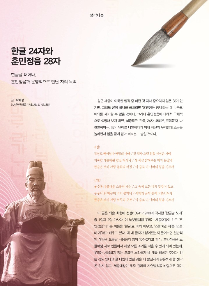 한국원자력연구원 사보<원우>10월호 '한글24자와 훈민정음 28자