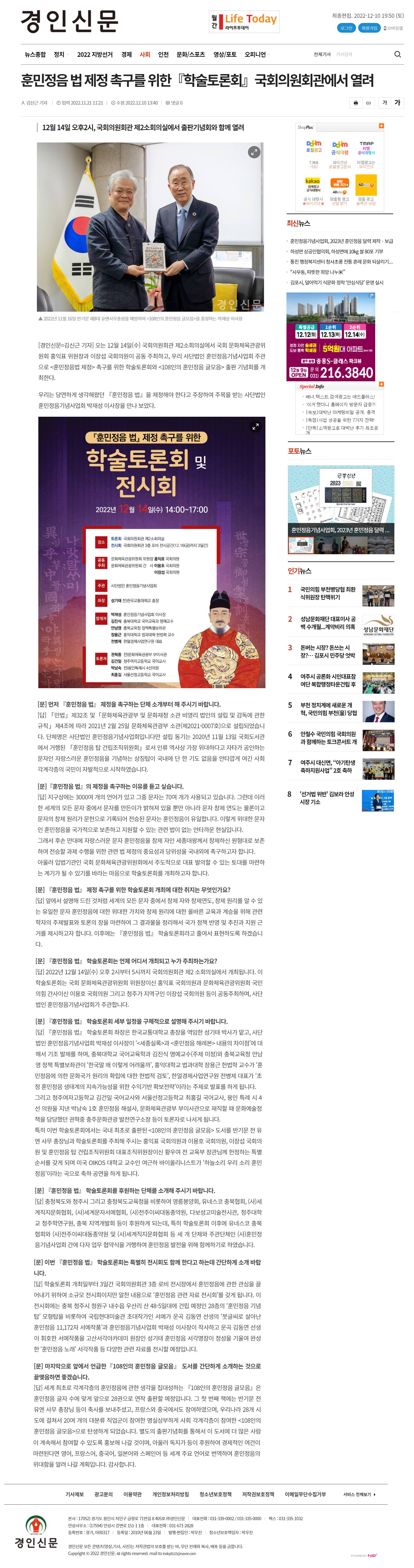 [경인신문] 훈민정음 법 제정 촉구를 위한 '학술토론회' 국회의원회관에서 열려
