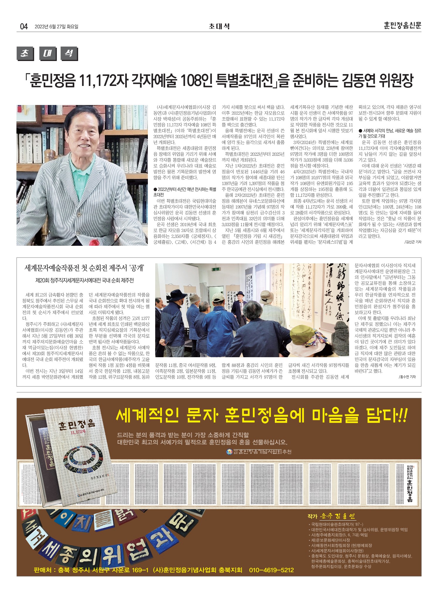 훈민정음의 반포 고증 및 청주시 활용 컨텐츠 연구용역 계약체결