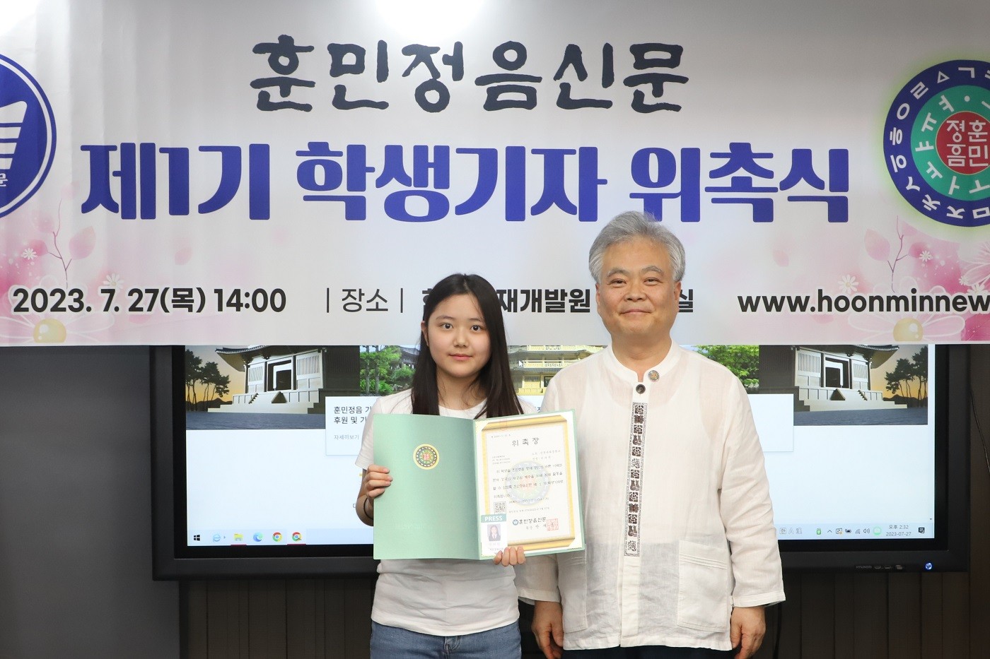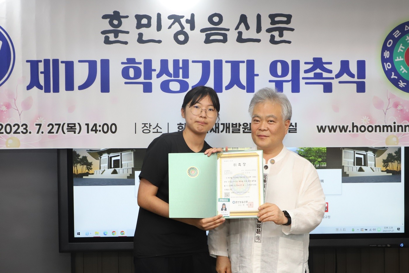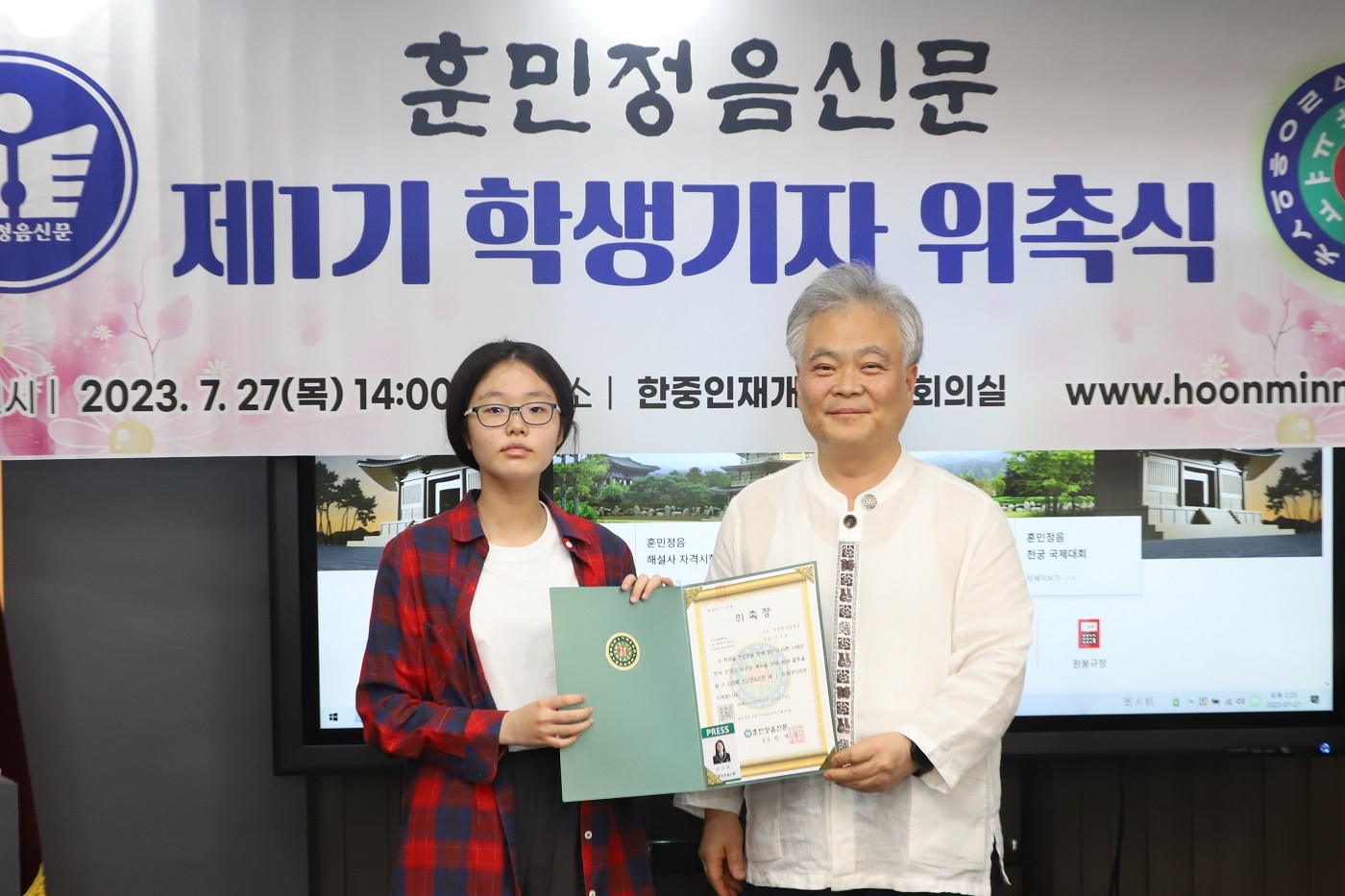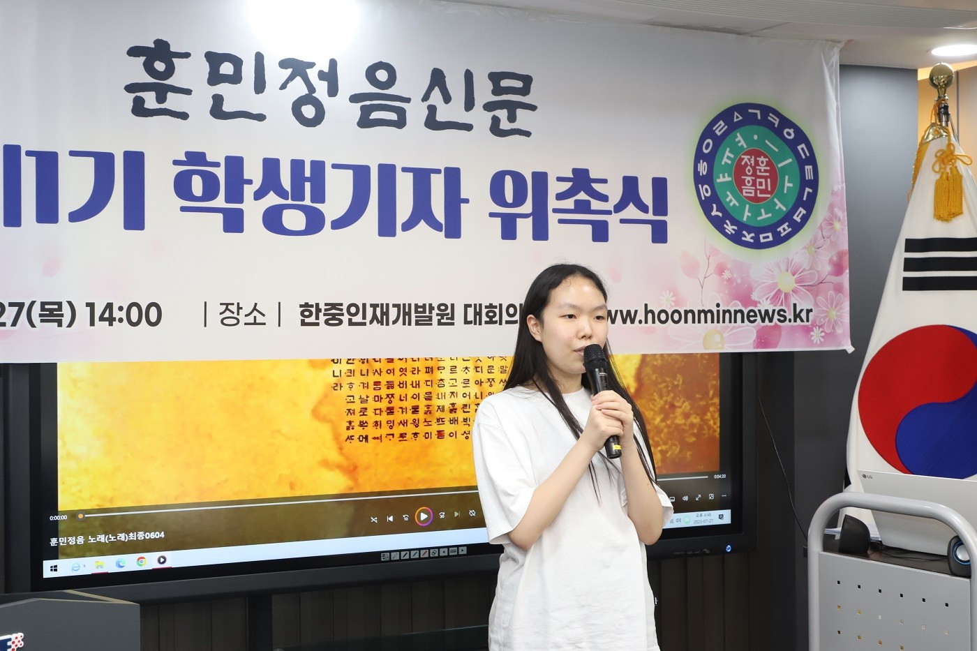 제1기 훈민정음신문 학생기자 위촉장 수여식