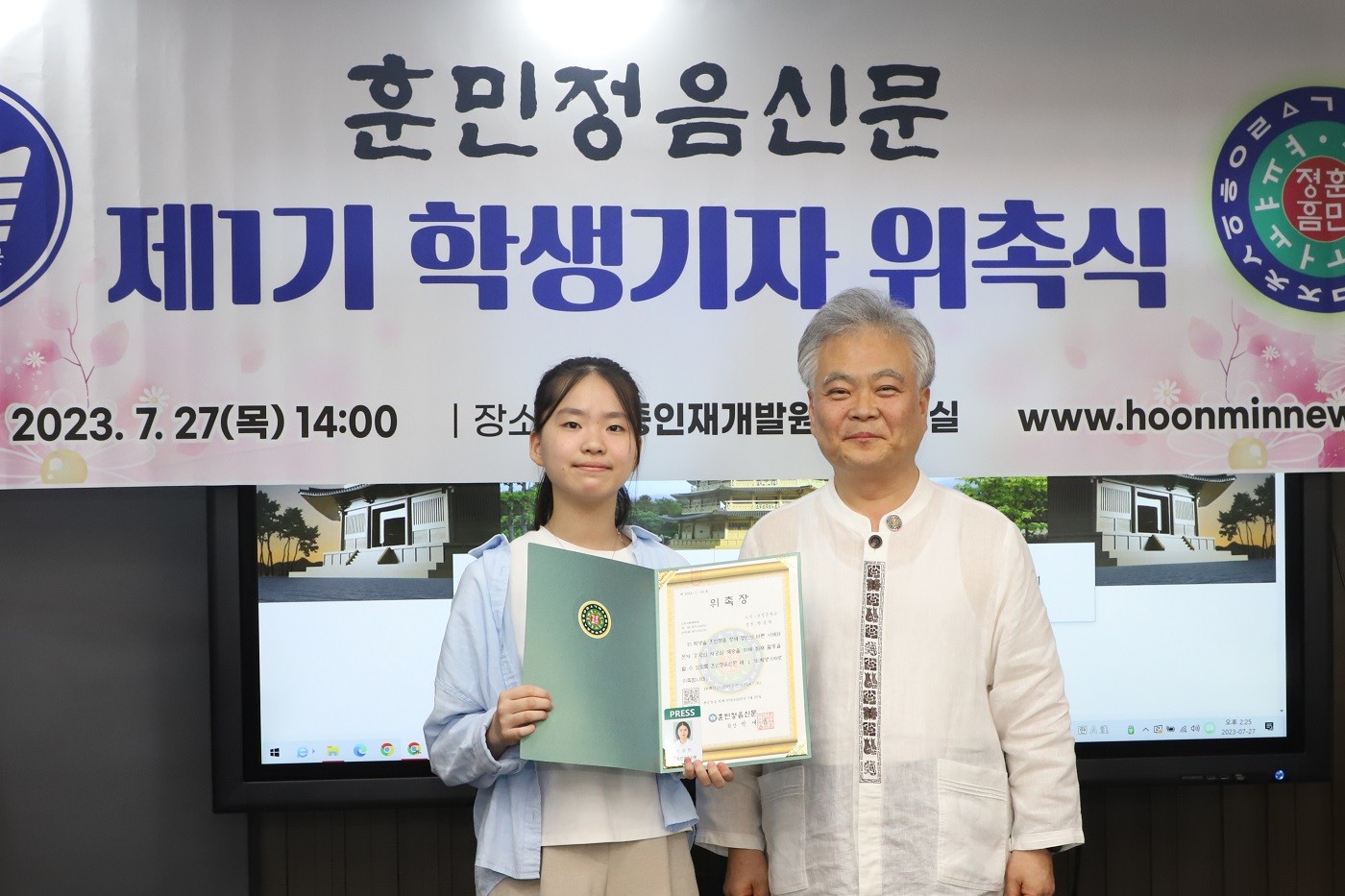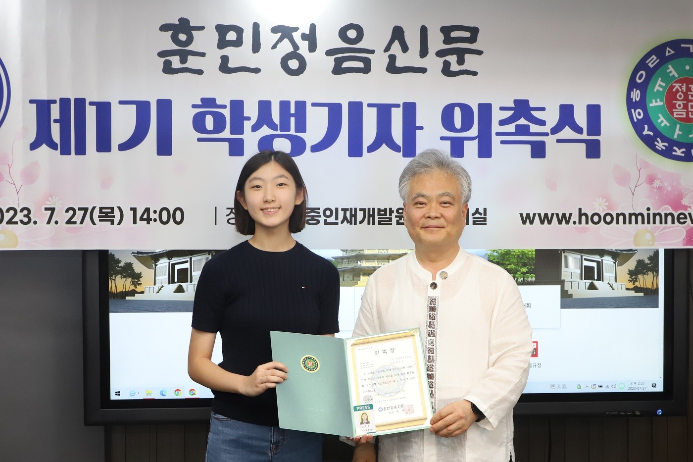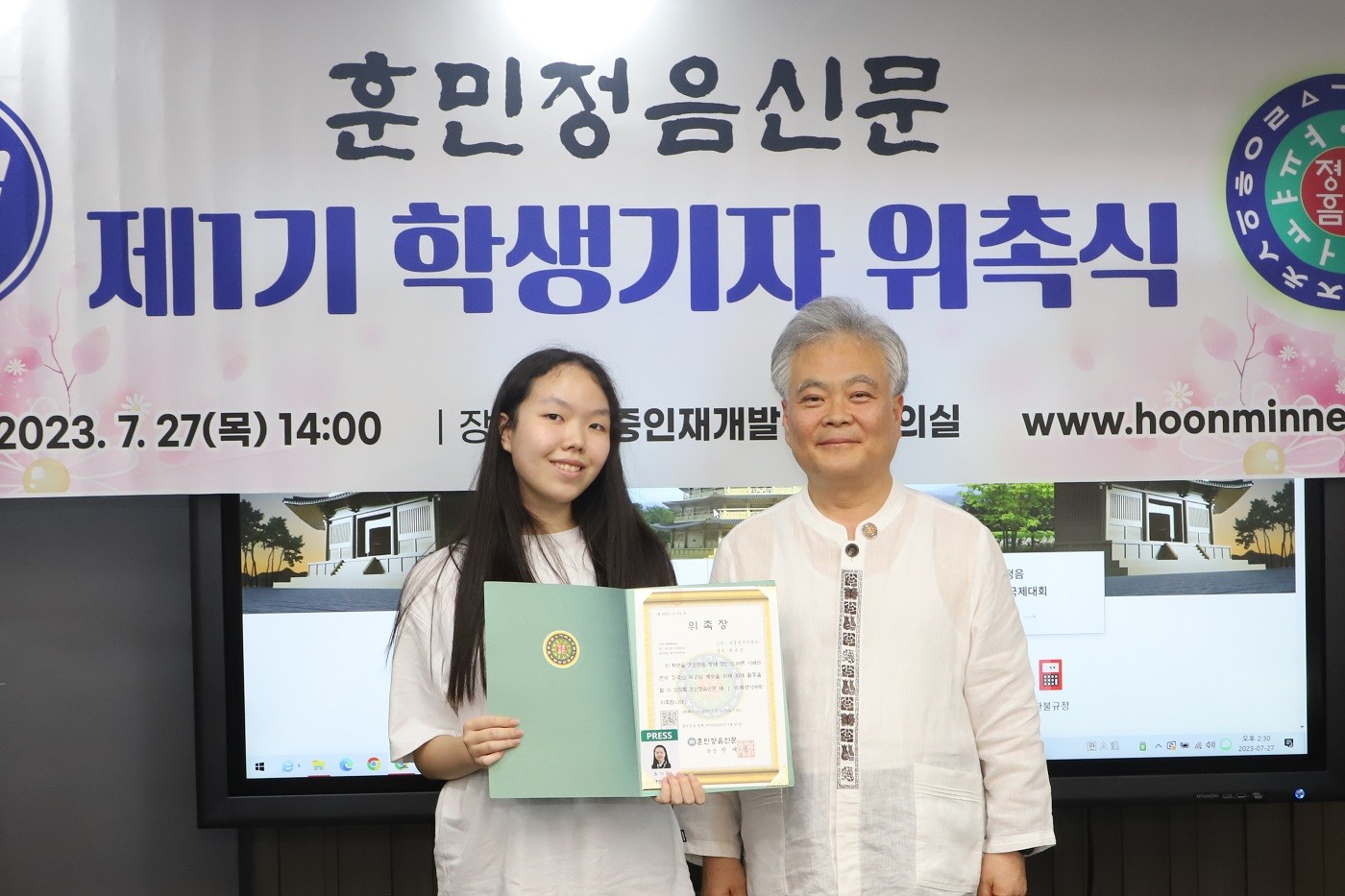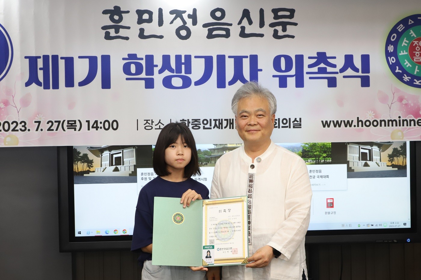 제1기 훈민정음신문 학생기자 위촉장 수여식