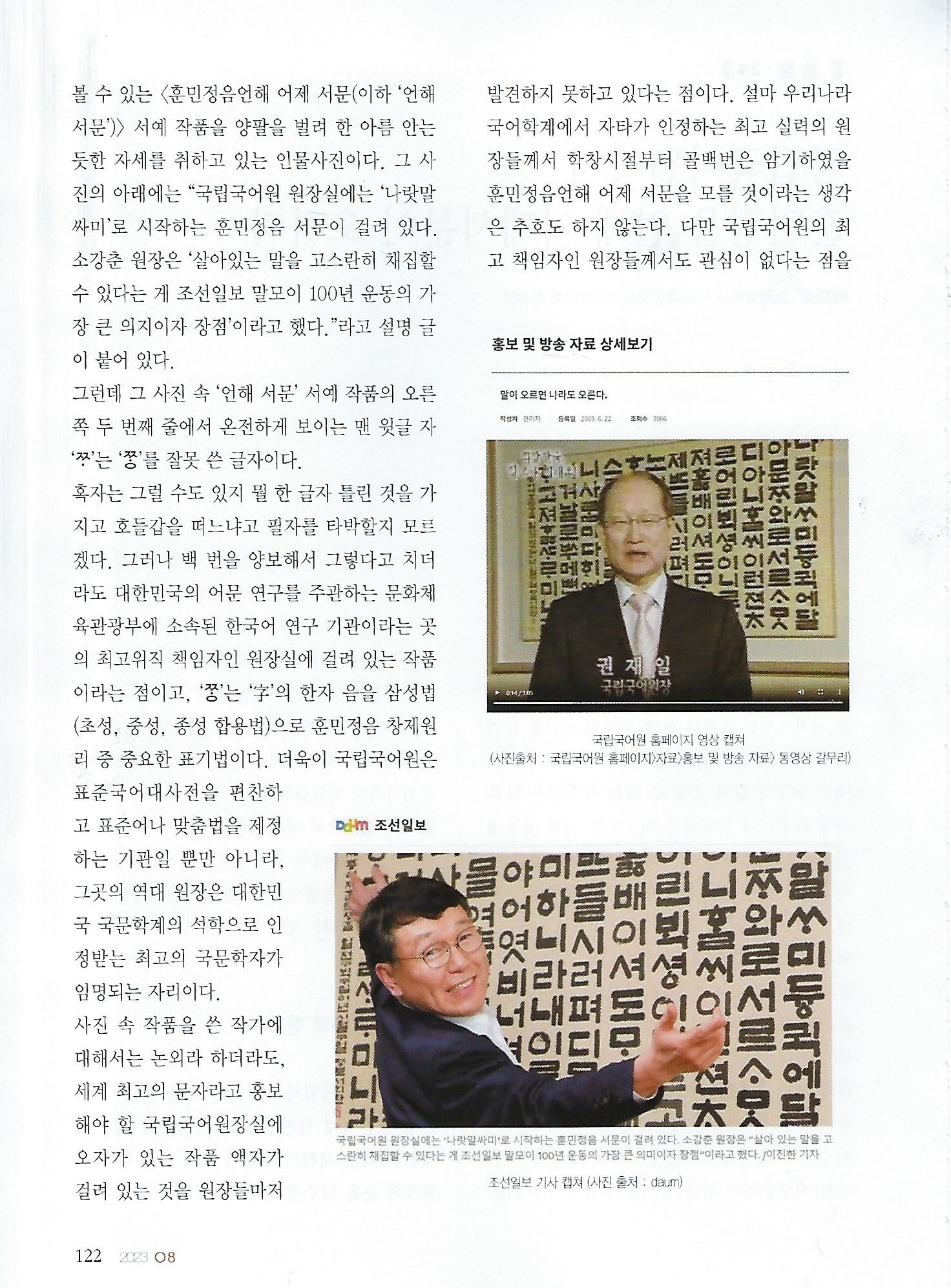 [월간서예문인화] 국립국어원마저 훈민정음 언해 어제서문이 오자다