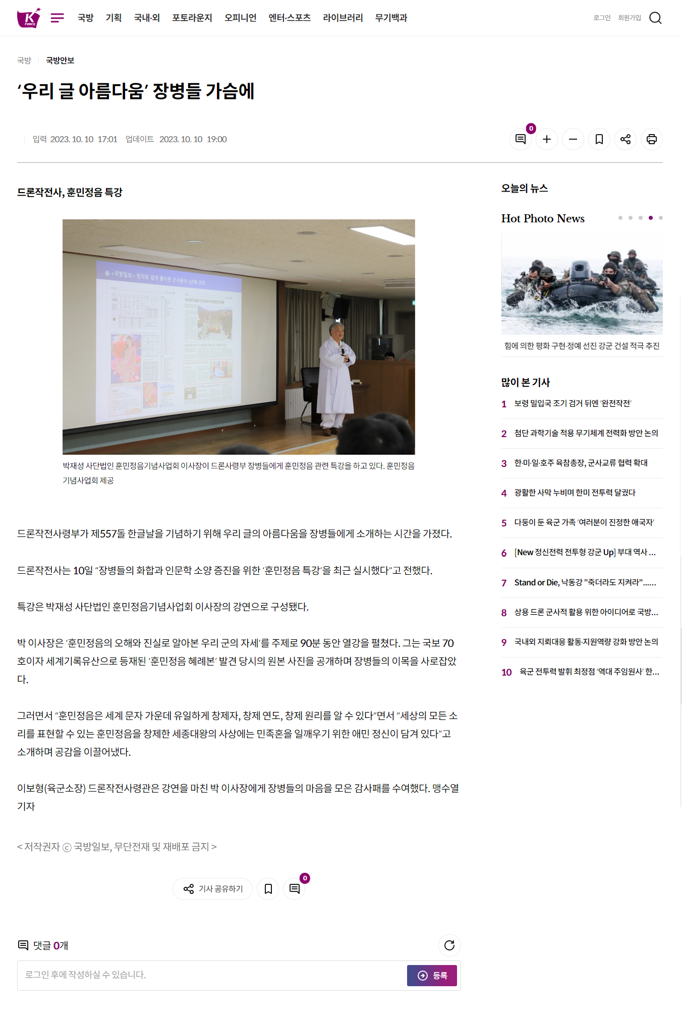[국방일보](지면신문) 드론작전사, 훈민정음 특강