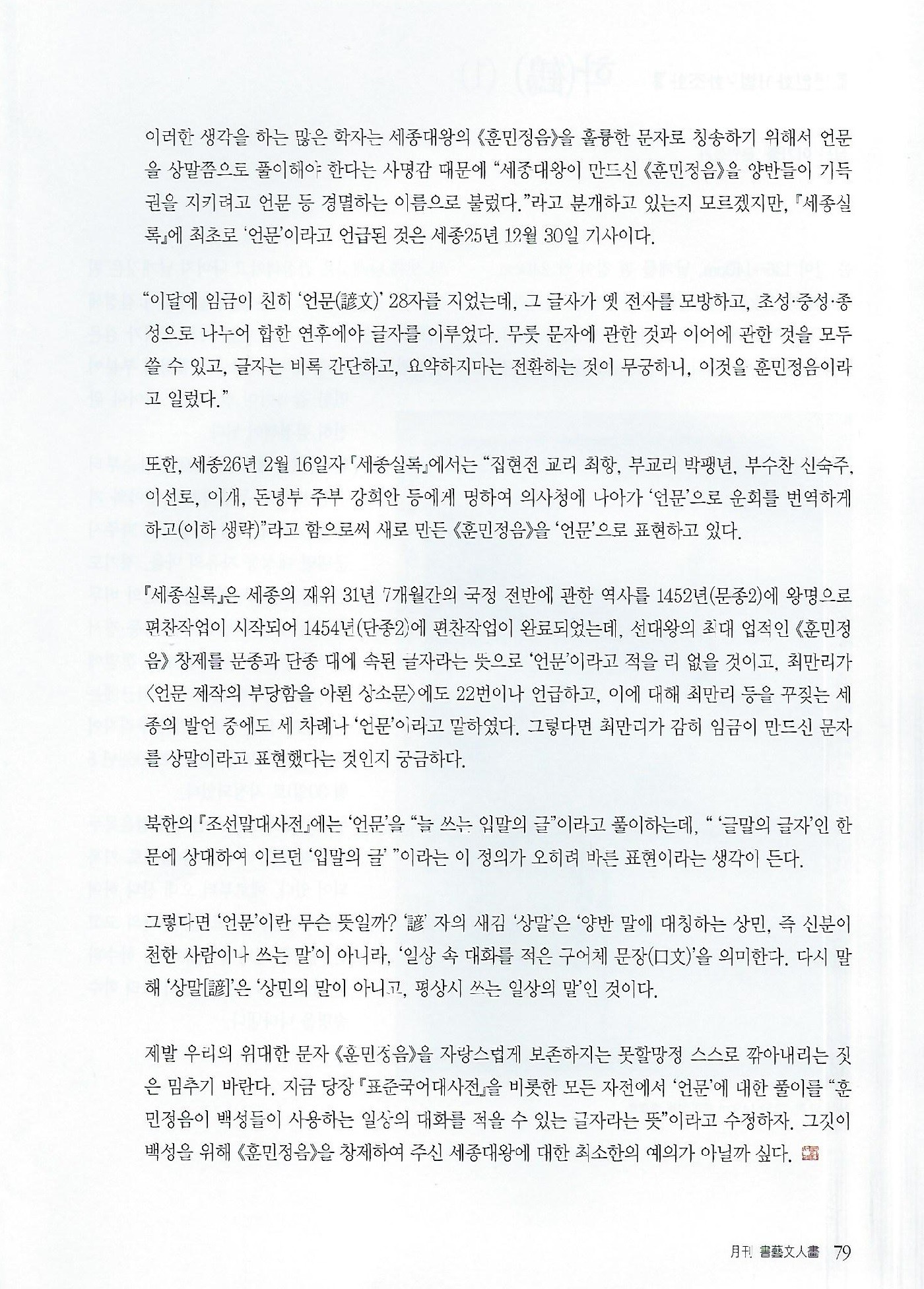 [월간서예문인화] '언문'울 훈민정음을 낮잡아 부른 이름이라고 가르치는 국어교육