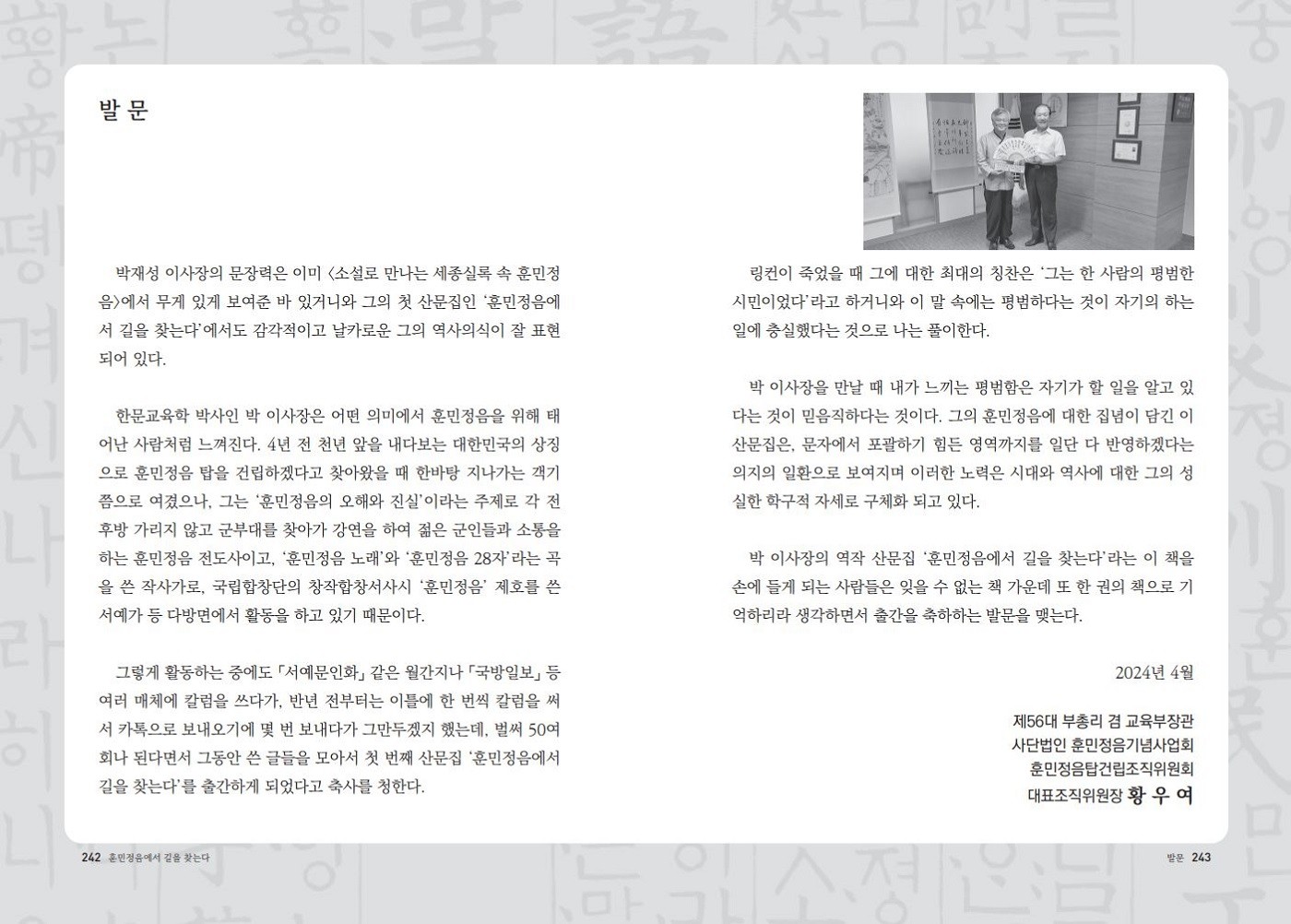 <훈민정음에서 길을 찾는다> 박재성 이사장 산문집 출간