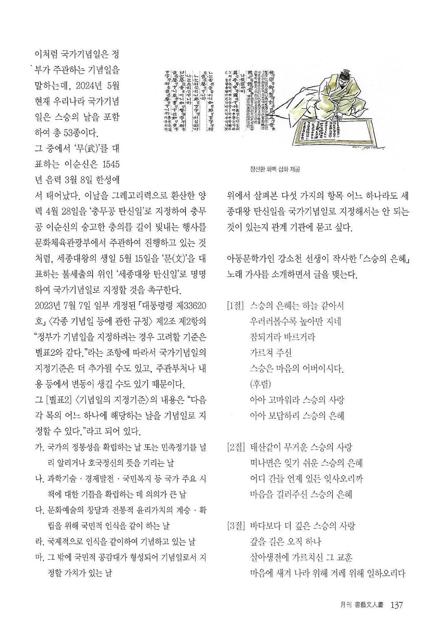 [월간 서예문인화] 세종탄신일을 국가기념일로 지정할 것을 촉구함