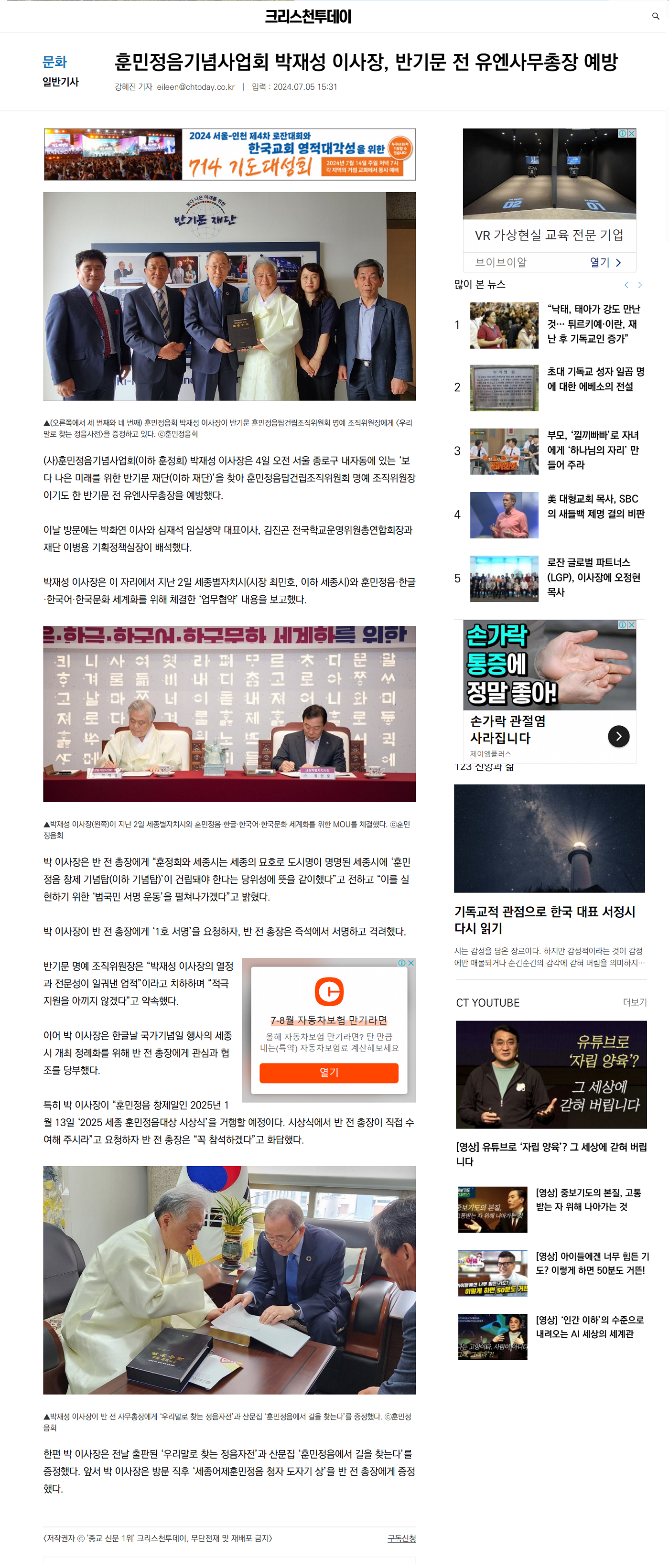 [크리스천투데이] 박재성 이사장, 반기문 전 유엔사무총장 예방