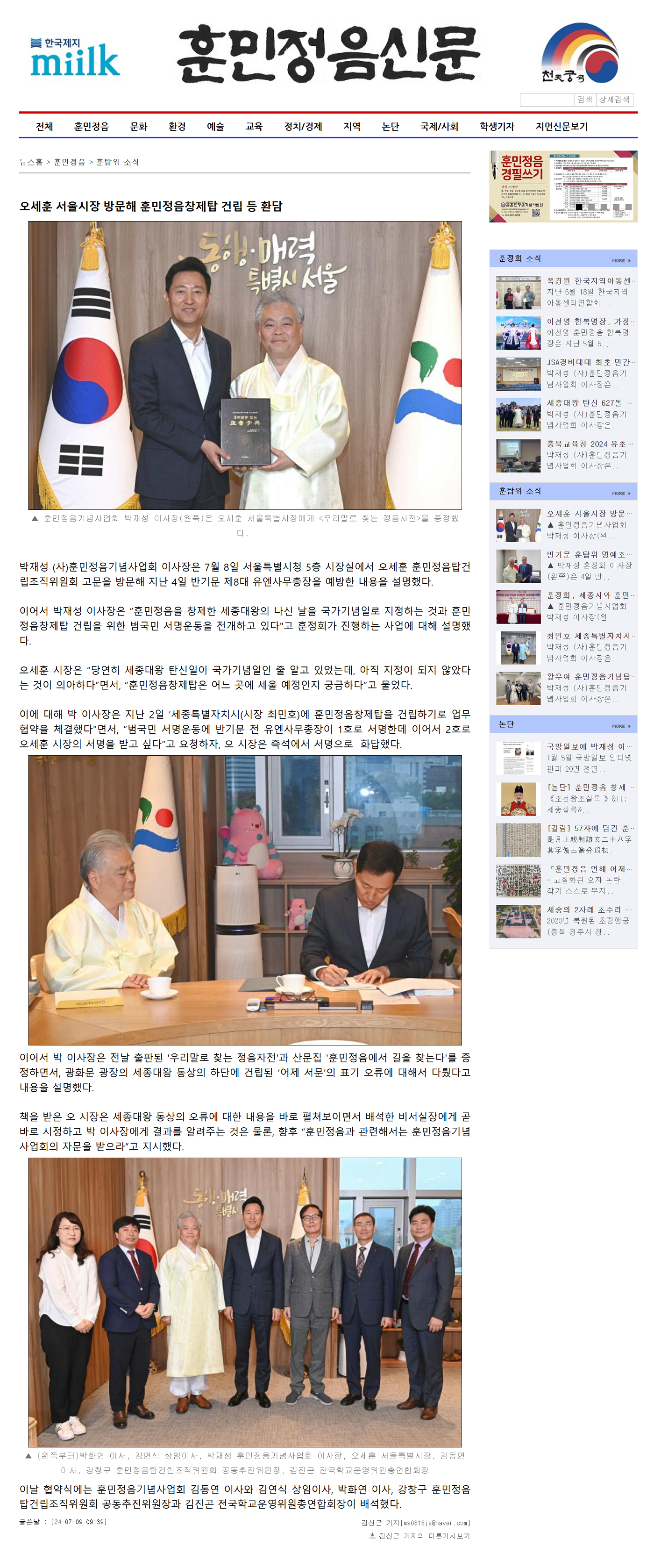 [훈민정음신문] 오세훈 서울시장 방문해 훈민정음창제탑 건립 등 환담