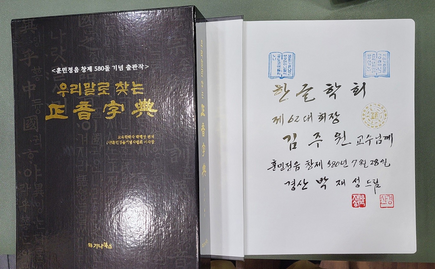 한글학회 김주원 회장 초대받아 저서 주고 받아