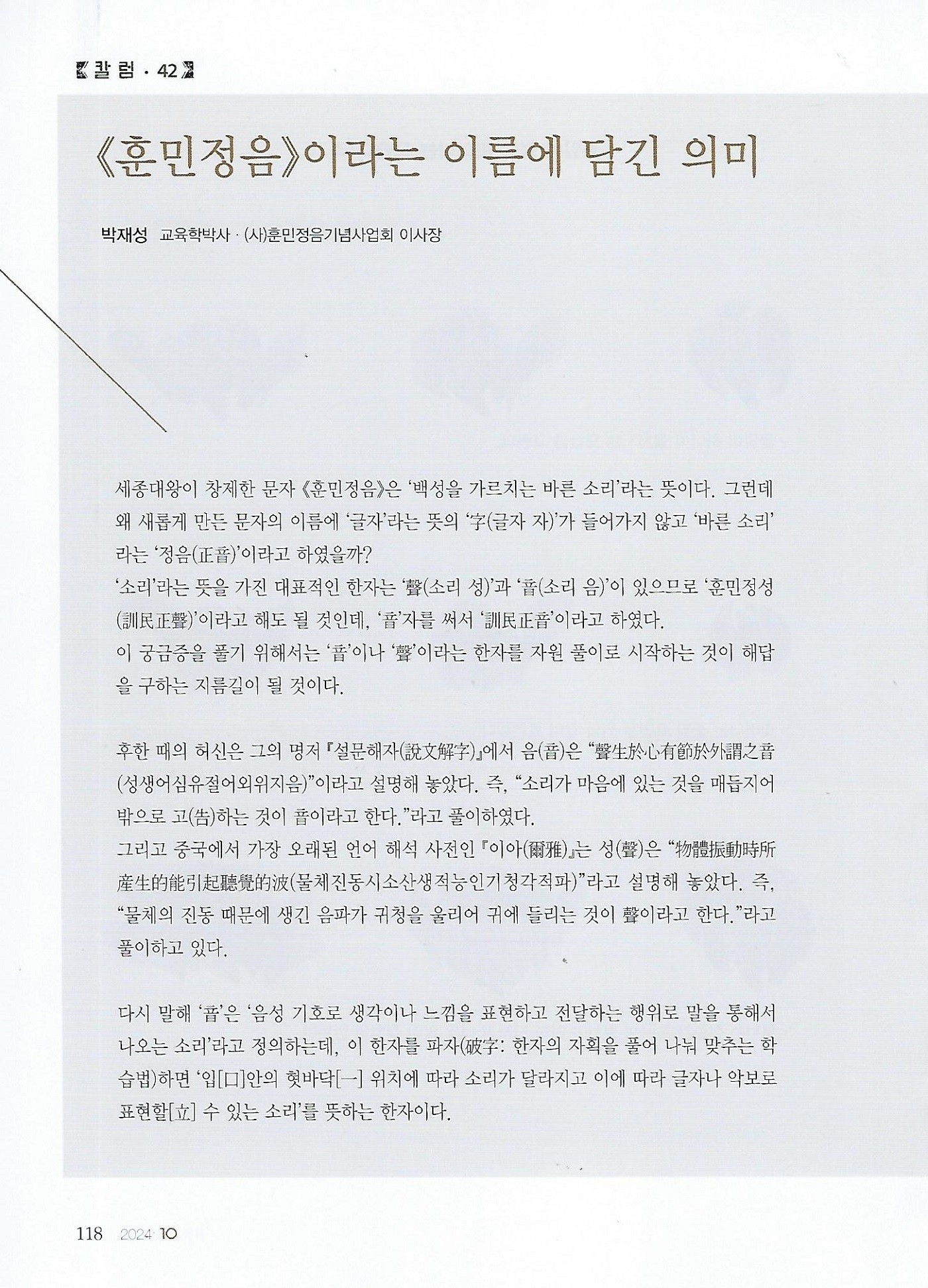 [월간 서예문인화] <훈민정음>이라는 이름에 담긴 의미