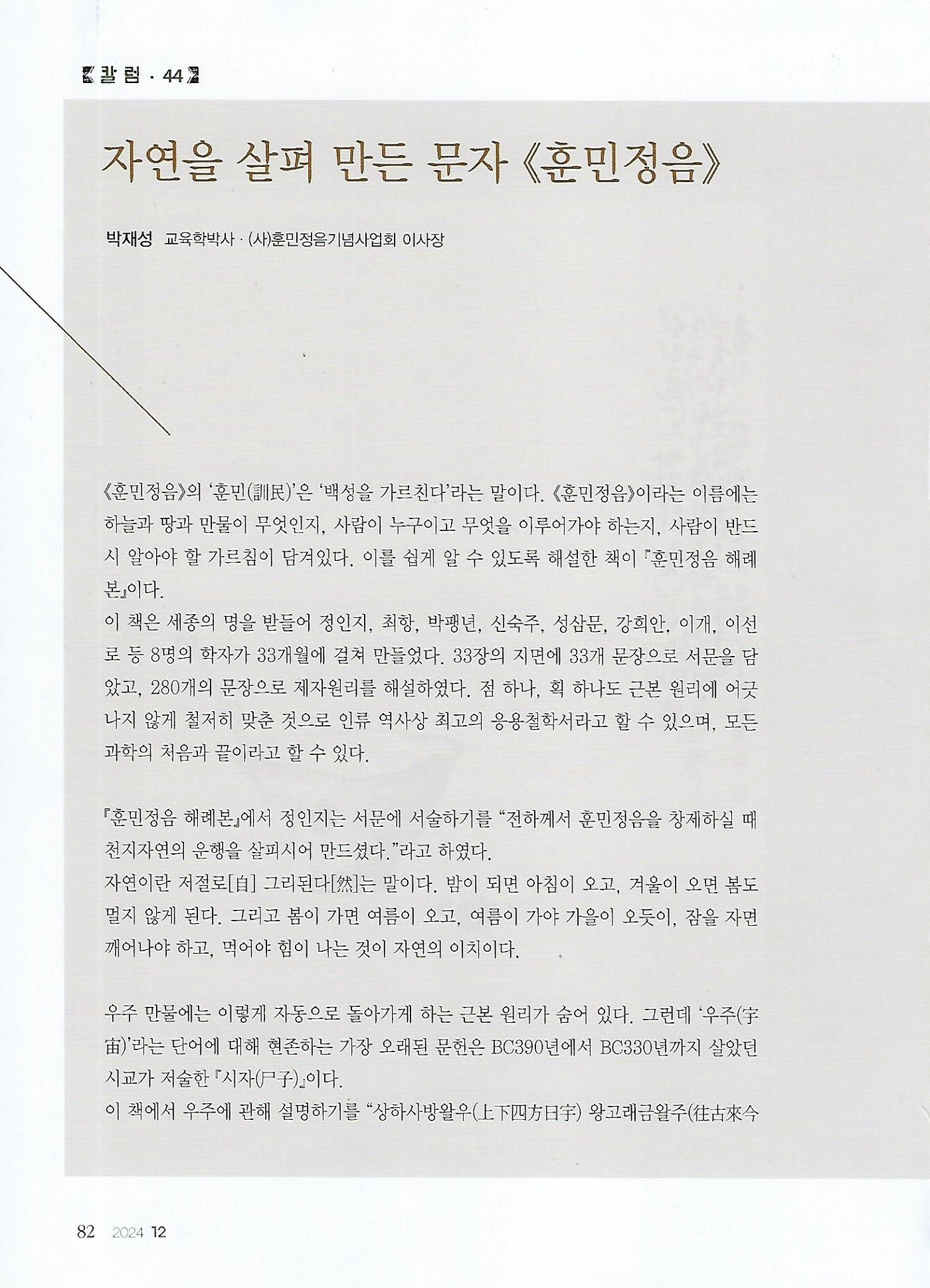 [월간서예문인화] 자연을 살펴 만든 문자 <훈민정음>