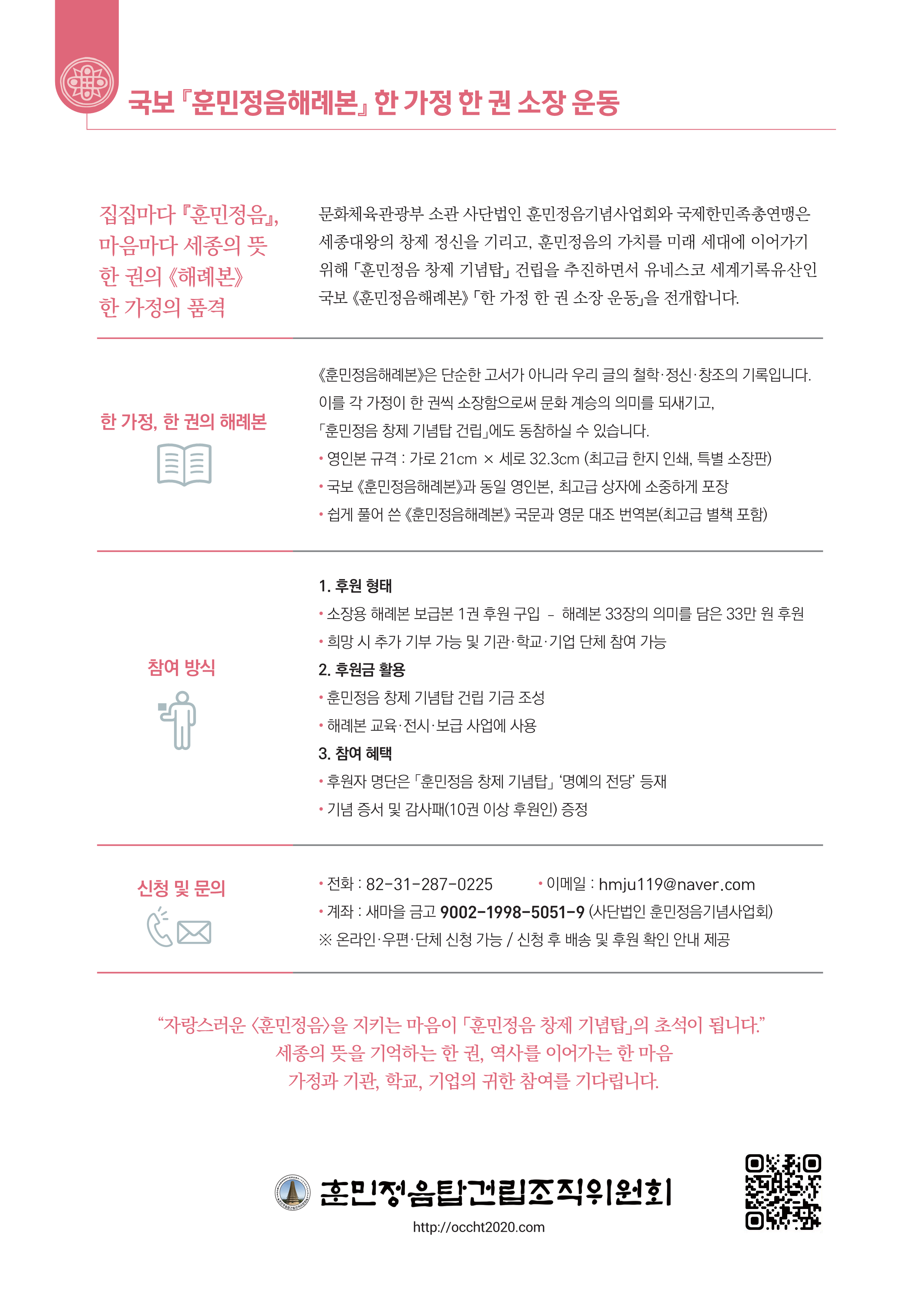 국보 <훈민정음해례본> 한 가정 한 권 소장운동