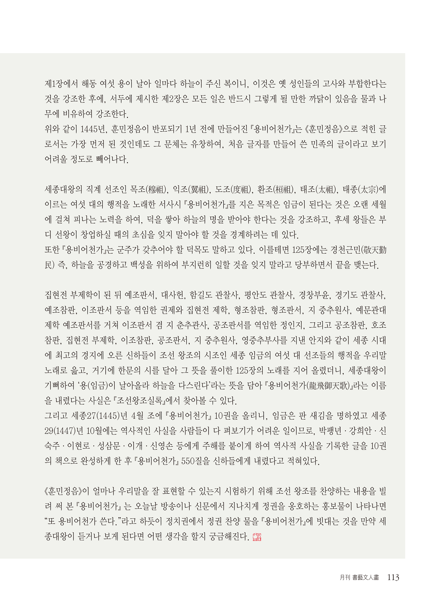 [월간서예문인화] 세종대왕의 통치이념에 깃든 훈민정음 창제 정신