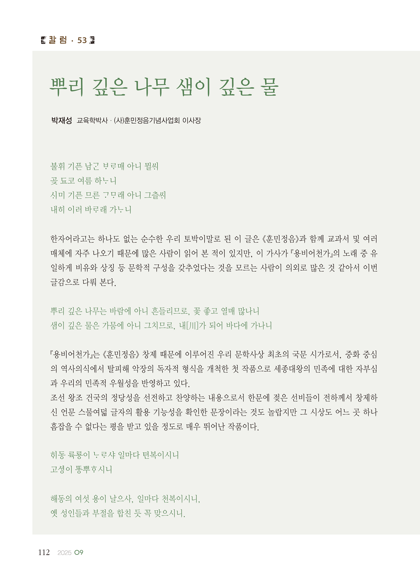 [월간서예문인화] 뿌리 깊은 나무 샘이 깊은 물