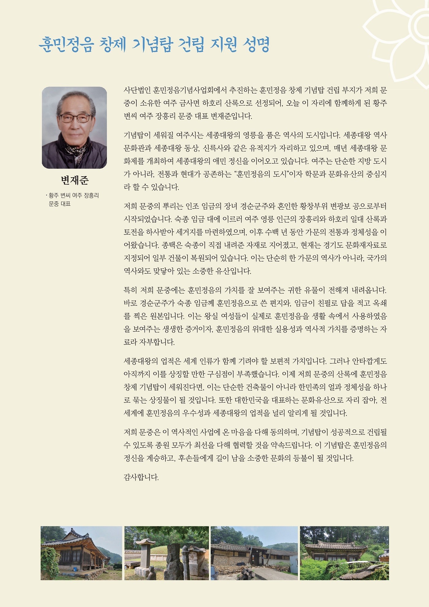 훈민정음 탑 건립 선포식 축사 - 김종춘