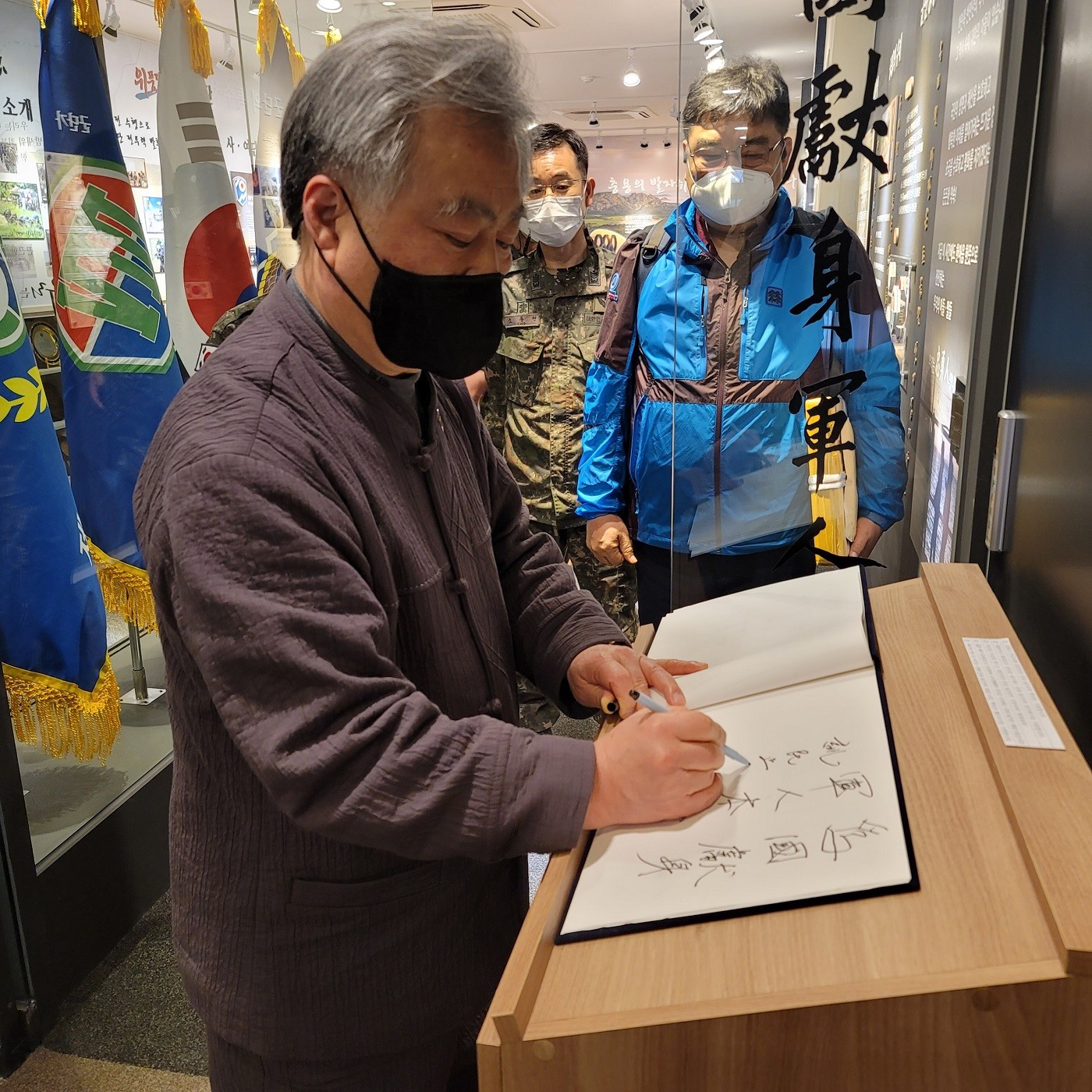 2021년 3월 19일(금) 오후 2시 강원도 양양에 있는 제8군단 사령부에 초대를 받은 훈민정음탑건립조직위원회 박재성 위원장이 강창구 군단장에게 훈민정음탑건립조직위원회 고문 위촉장을 수여하였다.