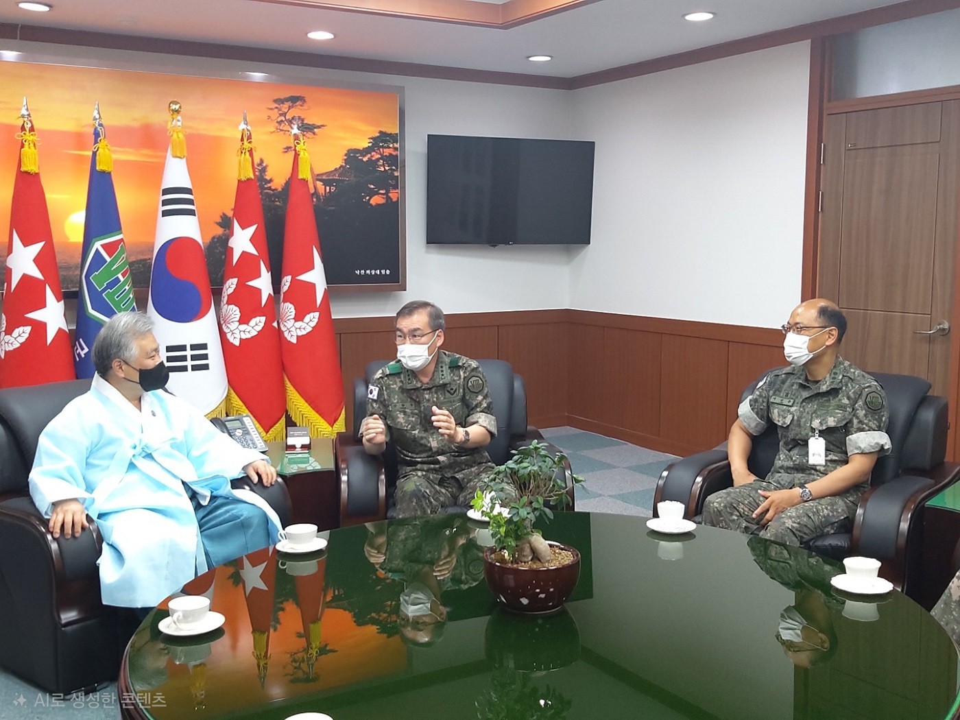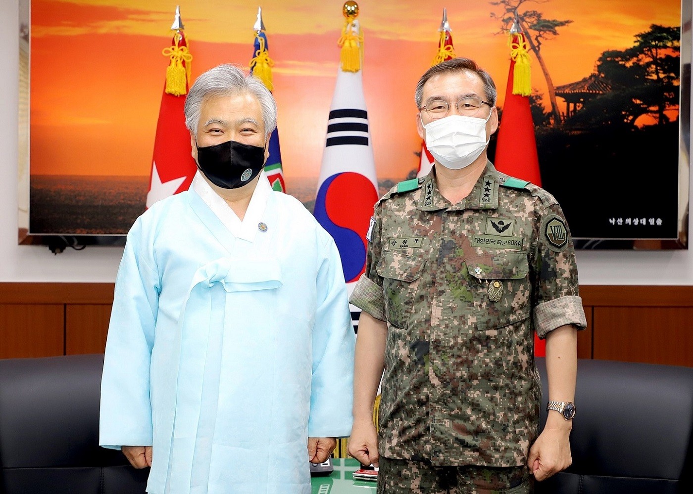 2021년 6월 16일, 박재성 이사장은 제8군단 군단장 강창구 중장의 초청으로 부대를 방문하였다. 군단장실 환담 후 고급 지휘관 40여 명을 대상으로 「훈민정음의 오해와 진실」을 주제로 안보 특강을 진행하였으며, 군 발전 및 장병 복지 지원 공로로 감사패를 수여받았다.