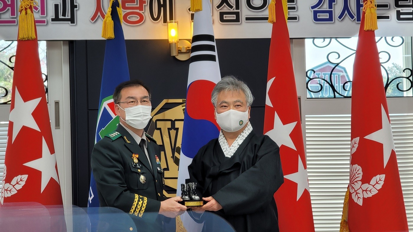 2021년 11월 25일, 박재성 이사장은 제8군단의 초청으로 부대를 다시 방문하였다. 이날 장병 피복 및 전투식량 등 군 운영 현황에 대한 설명을 청취하였으며, 군단 발전에 대한 관심과 지원에 대한 공로로 공로패를 수여받았다.