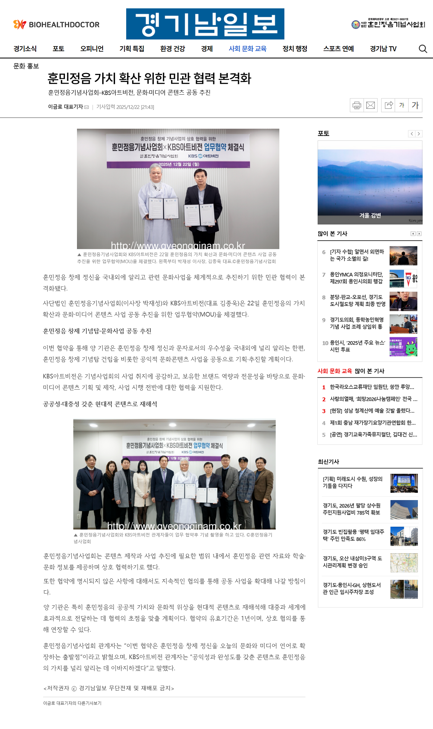 [경기남일보] 훈민정음 가치 확산 위한 민관 협력 본격화