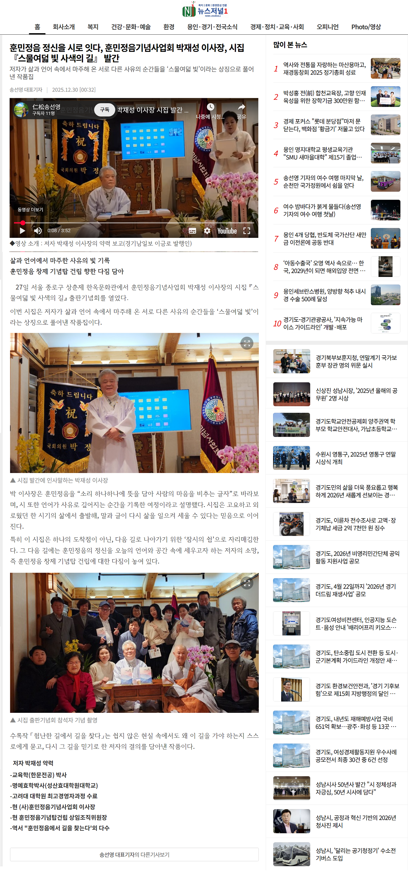 [뉴스저널1] 훈민정음 정신을 시로 잇다, 『스물여덟 빛 사색의 길』 발간