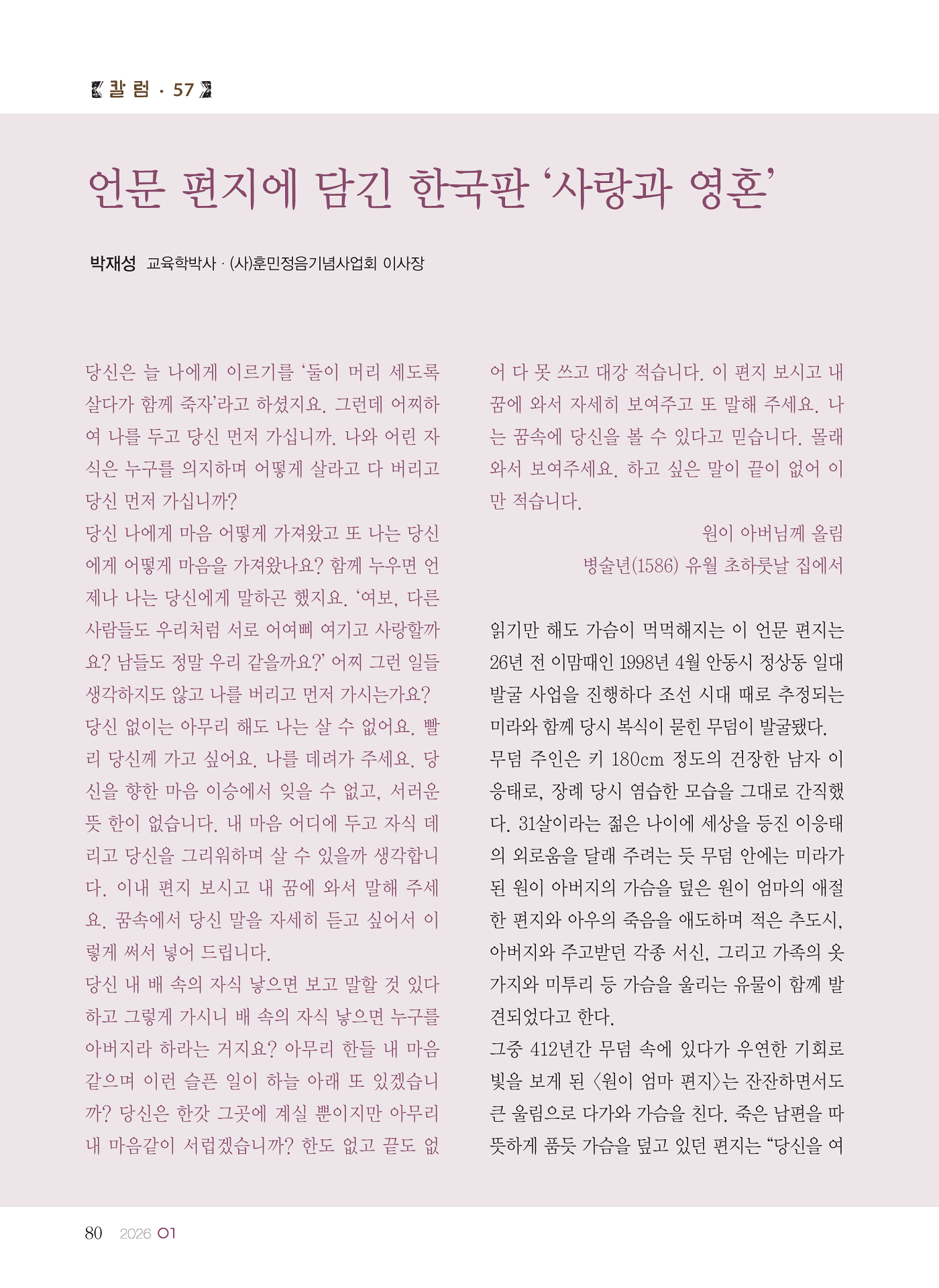 [월간서예문인화] 언문 편지에 담긴 한국판 '사랑과 영혼'