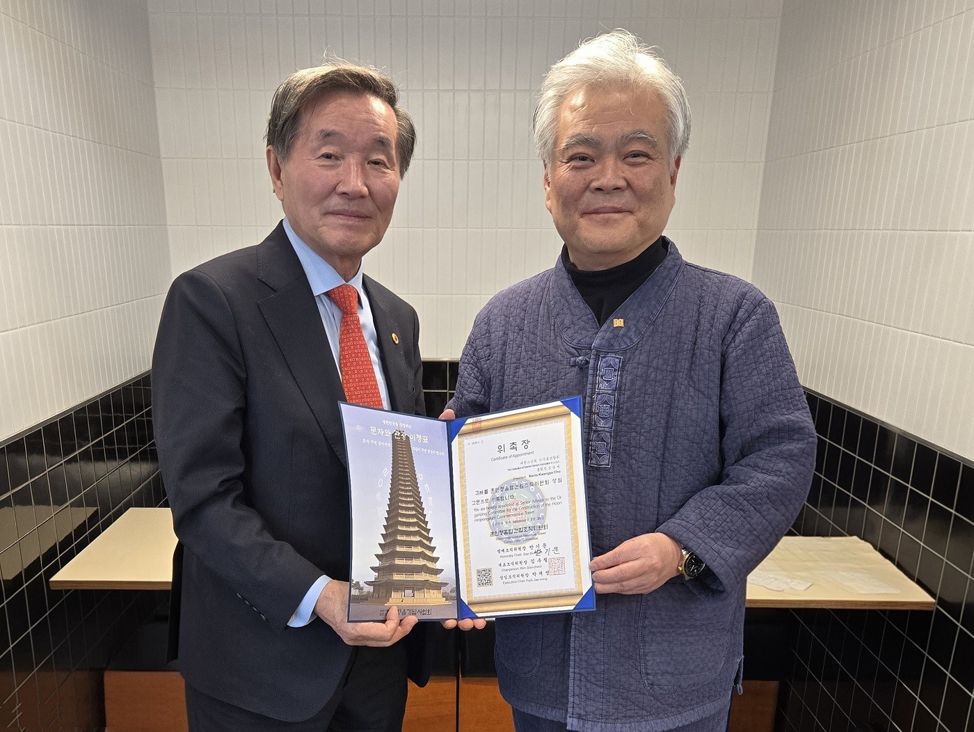 사단법인 훈민정음기념사업회 박재성 이사장은 2026년 2월 25일(수) 오후 4시, 대한노인회 세계 총회 참석차 내한한 대한노인회 미주총연합회 조광세 총회장을 만나 환담을 나누었다.