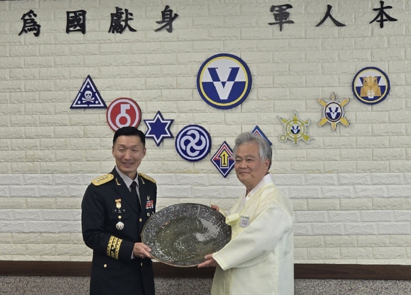 2024년 10월 16일, 박재성 이사장은 제5군단 군단장 김성민 중장의 초청으로 창설 제71주년 기념식에 참석하였다. 이는 군단 장병 대상 「훈민정음의 오해와 진실」 특강을 계기로 이어진 교류의 연장선에서 이루어진 공식 초청으로, 행사에서 지름 70cm 도자기 접시에 직접 휘호한 ‘용비어천가 2장’ 서예 작품을 기념 증정하였다.