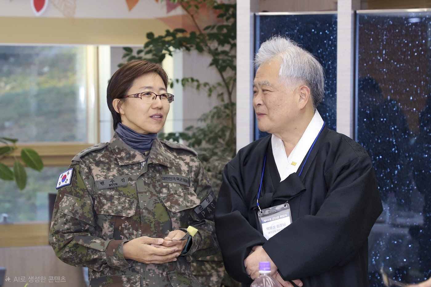 2025년 11월 18일(화) 오후 3시 30분, 사단법인 훈민정음기념사업회 박재성 이사장은 제45대 5군단장 이일용 중장 취임식에 초청을 받아 참석하였다. 이날 취임식 이후 이어진 다과 리셉션에서 박재성 이사장은 하객 대표 건배자로 추천을 받았다. 박 이사장은 인사말을 통해 “2년 전 5군단에서 ‘훈민정음 오해와 진실’을 주제로 강연하며 소중한 인연을 맺었다”고 회고하며, 취임식이 거행된 ‘사맛디 광장’의 ‘사맛디’가 지닌 의미가 ‘소통’임을 강조하였다. 아울러 “오늘 이일용 군단장께서 취임사에서 밝히신 ‘소통하는 군단’의 비전에 깊이 공감한다”고 전한 뒤, “제가 ‘승진군단’을 외치면 여러분께서는 ‘사맛디’로 화답해 주시기 바란다”고 제안하여 참석자들의 큰 호응을 이끌어냈다. 박재성 이사장은 이일용 군단장의 취임을 축하하며 5군단 로고가 새겨진 기념 도자기를 증정하였고, 이후 기념촬영을 진행하였다.