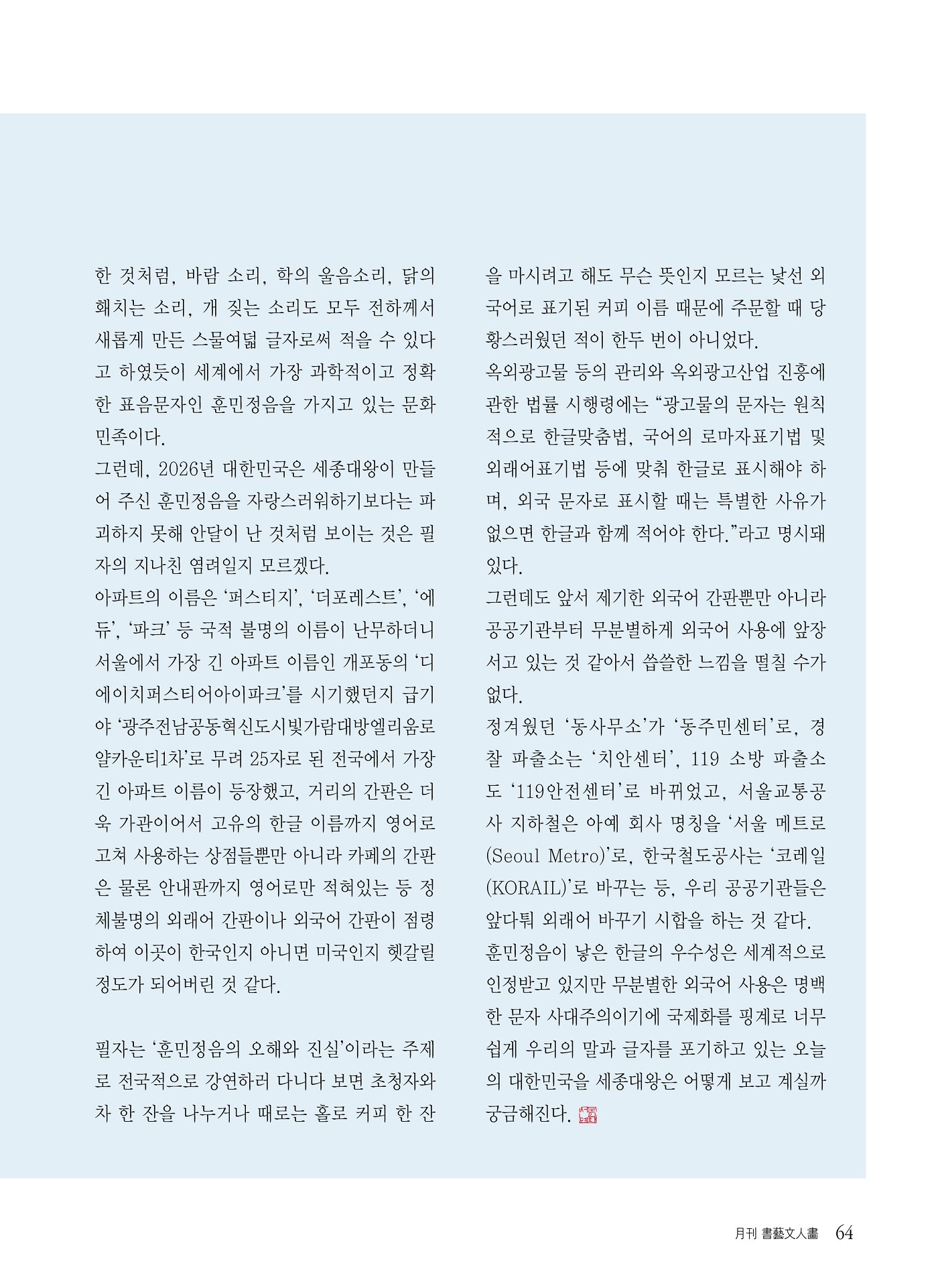 [월간서예문인화] '엉겅퀴'라고 적을 수 있는 문자 훈민정음